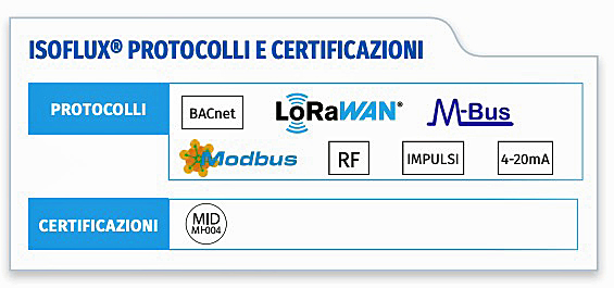 I valori memorizzati possono poi essere resi disponibili per altre elaborazioni e la presenza di due slot per i protocolli disponibili via filo (Mbus, MODBus, BACnet) e via radio (WMBus, LoRaWan) facilita l’integrazione dello strumento con le reti nuove o già esistenti.