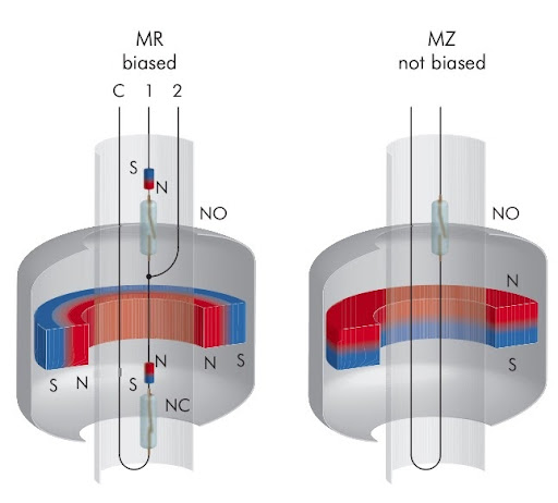 Sono costituiti da un tubo di guida cieco, un corpo cavo galleggiante che incorpora un magnete libero di scorrere lungo il tubo  insieme al livello del fluido da misurare, dei collari regolabili per limitare lo spostamento del corpo galleggiante nel tubo e un contatto reed, cioè un interruttore a lamina, normalmente aperto, che si chiude in presenza di un campo magnetico.
