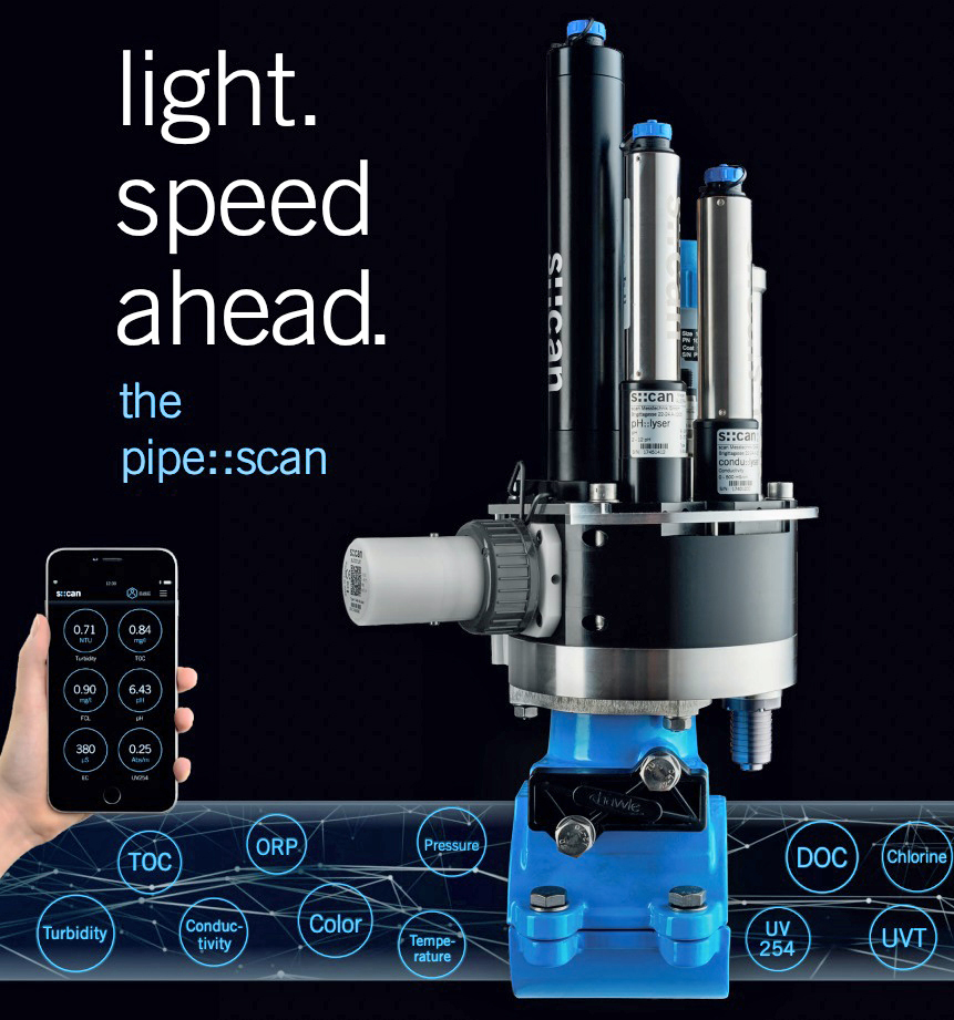 Esso monitora la qualità dell’acqua potabile nei tubi sotto pressione e può misurare fino a 10 parametri in un unico apparato (TOC, DOC, UV254, torbidità, colore, cloro, pH/Redox, conducibilità, temperatura e pressione) e inviare dati sulla qualità dell’acqua a qualsiasi sistema di acquisizione centralizzato tramite svariati protocolli di comunicazione.