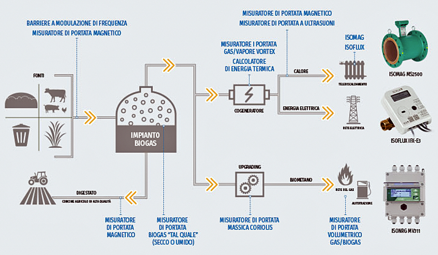 ISOIL Industria fornisce misuratori di portata, contabilizzatori di energia termica e altri strumenti come indicatori di giri, convertitori e relè di frequenza che soddisfano le esigenze dei processi che avvengono negli impianti biogas e negli impianti di cogenerazione.