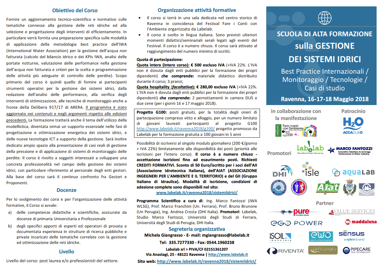 Sono previsti CREDITI FORMATIVI. Modalità di iscrizione, condizioni di adesione complete sono disponibili nel sito: www.labelab.it/ravenna2018/sistemiidrici/