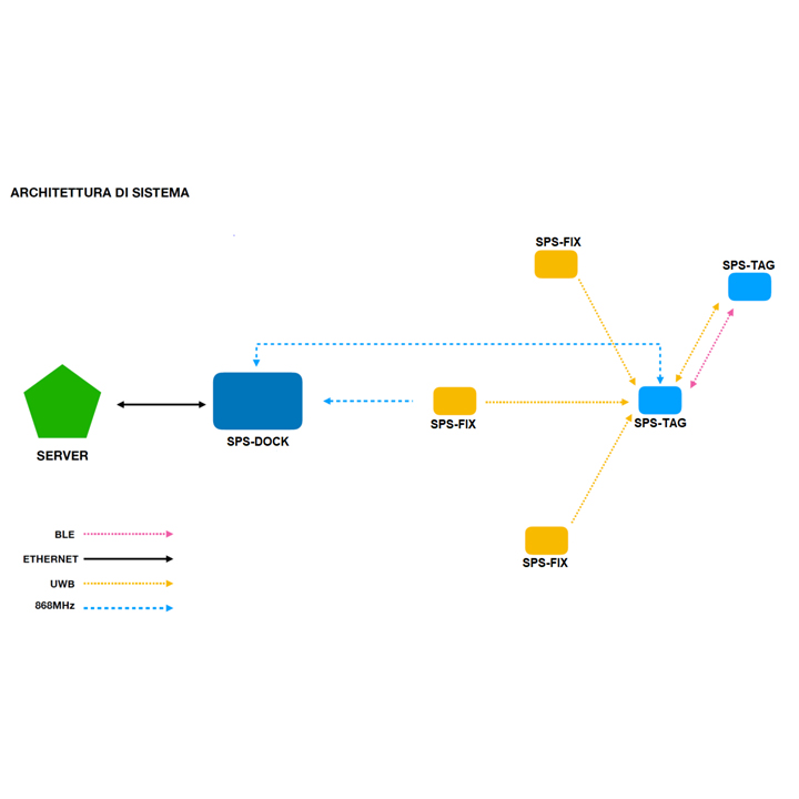 The SPS Safety Positioning System is a software and hardware solution for the management, control and safety of the movements of vehicles in classified and delimited sensitive areas. It provides services such as outdoor free tracking over long distances, restricted tracking over short distances with the need for higher data accuracy and certainty and tracking in closed areas (i.e. indoor) where GPS technology can be highly inaccurate.