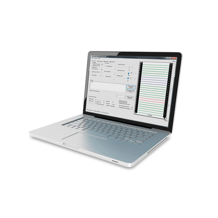Queste impostazioni selezionabili/regolabili includono: modalità di scansione, modalità operativa, controllo/modalità di guadagno, isteresi, funzione di blanking e funzione di smoothing (pre-filtro). La barriera fotoelettrica offre un’uscita analogica a 2 fili (4-20 mA o 0-10 V) e fino a quattro singole uscite digitali che possono essere configurate individualmente con una selezione di una vasta gamma di condizioni di misurazione e di uscita. È incluso un ingresso digitale per alternare tra due diverse letture di uscita sull’uscita analogica.