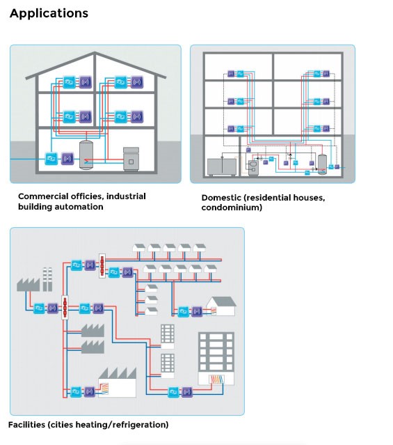 Este método é particularmente adequado para sistemas de distribuição horizontal. As calculadoras de energia são instaladas na entrada do sistema de distribuição de cada usuário individual e medem o valor real da energia térmica/de resfriamento consumida.